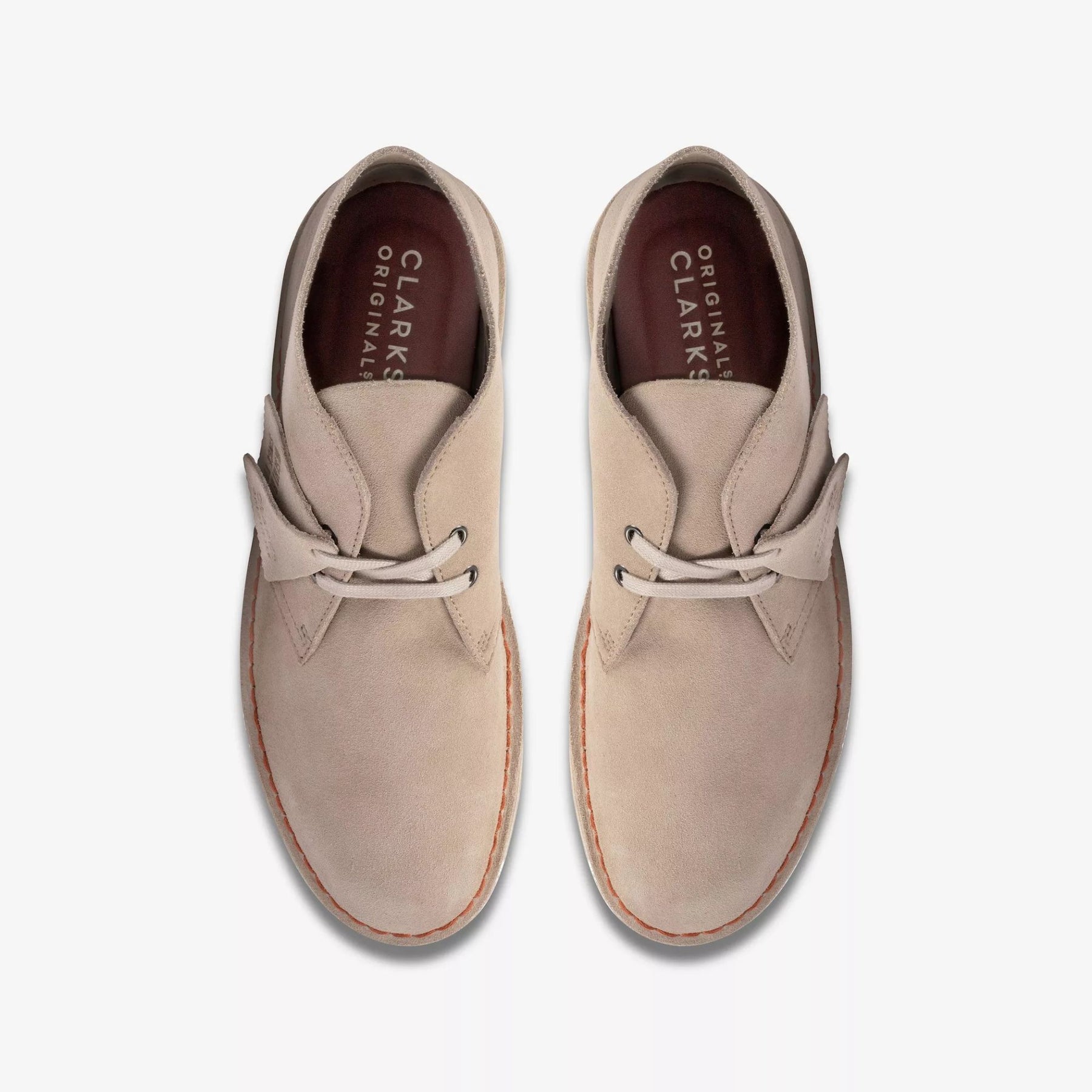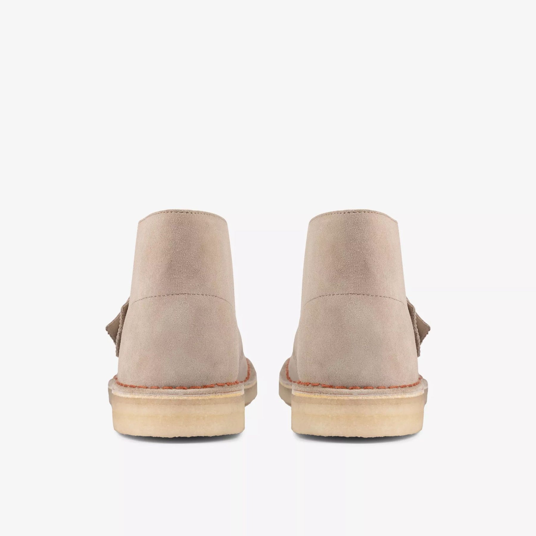Cultural cachet and design DNA: no shoe is quite like the Clarks Originals Desert Boot. Nathan Clark’s 1950 design was inspired by a rough boot from Cairo’s Old Bazaar, and its minimal, progressive style sparked a worldwide footwear revolution – worn by beatniks, mods, Britpop bands, and Jamaican rude boys, from Paris to Kingston, Tokyo to London. Every design detail today remains true to that first pioneering pair – here, the boot’s crafted, clean lines are enhanced with premium sand suede, finished with an unfussy lace fastening. The authentic, sustainably sourced crepe sole completes this distinctive silhouette. Instantly recognisable, forever iconic. A true original.