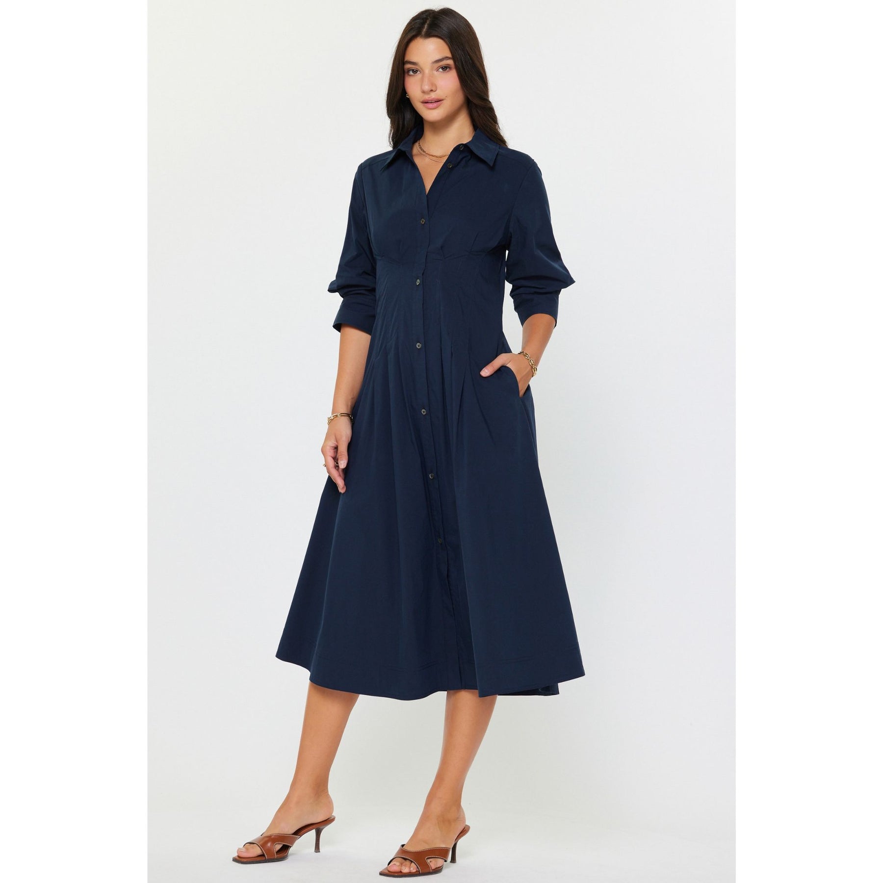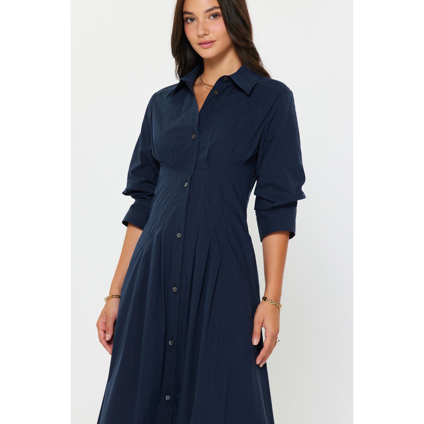 -Fitted bodice with pleated detailing
