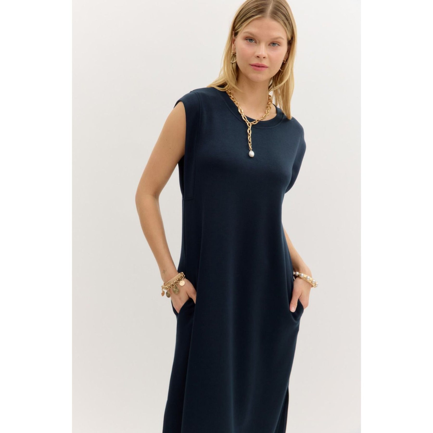 Slip into the playful charm of the ENTRO DRESS, a solid jersey knit pullover midi dress designed with a side slit hem. Lightweight and non-sheer, it moves with you while keeping comfort front and center. With handy pockets tucked at the sides, this unlined dress is perfect for a casual day out or a spontaneous adventure. Effortless style just got a little more fun!