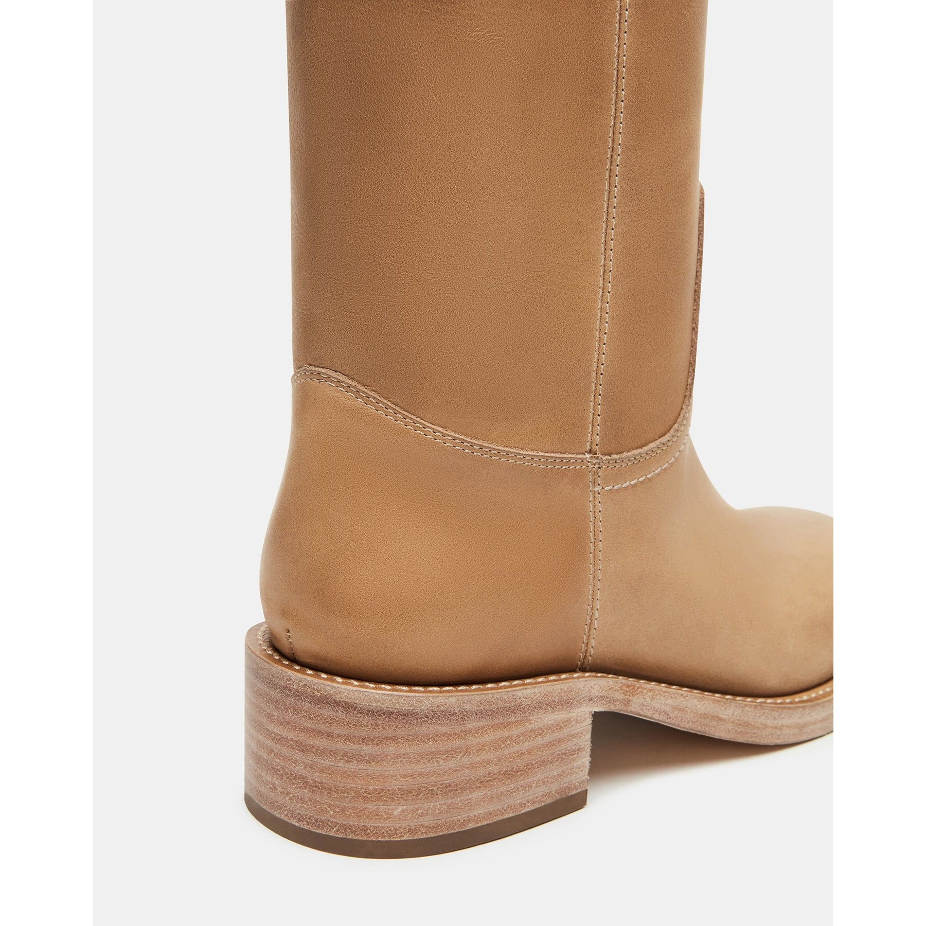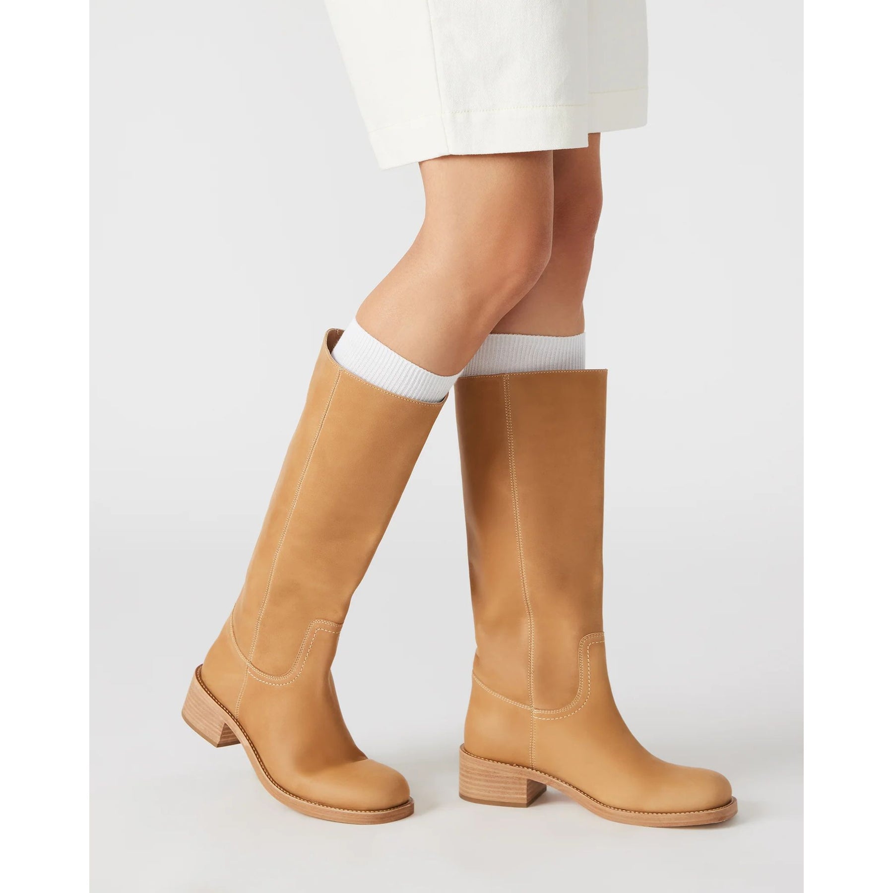 Effortlessly elevate your style with the RIGGS BANANA LEATHER boot. With its square-toe and sleek design, this just-under-the-knee boot is a must-have for any fashion-conscious individual. This timeless boot provides both comfort and sophistication, making it the perfect addition to any outfit.