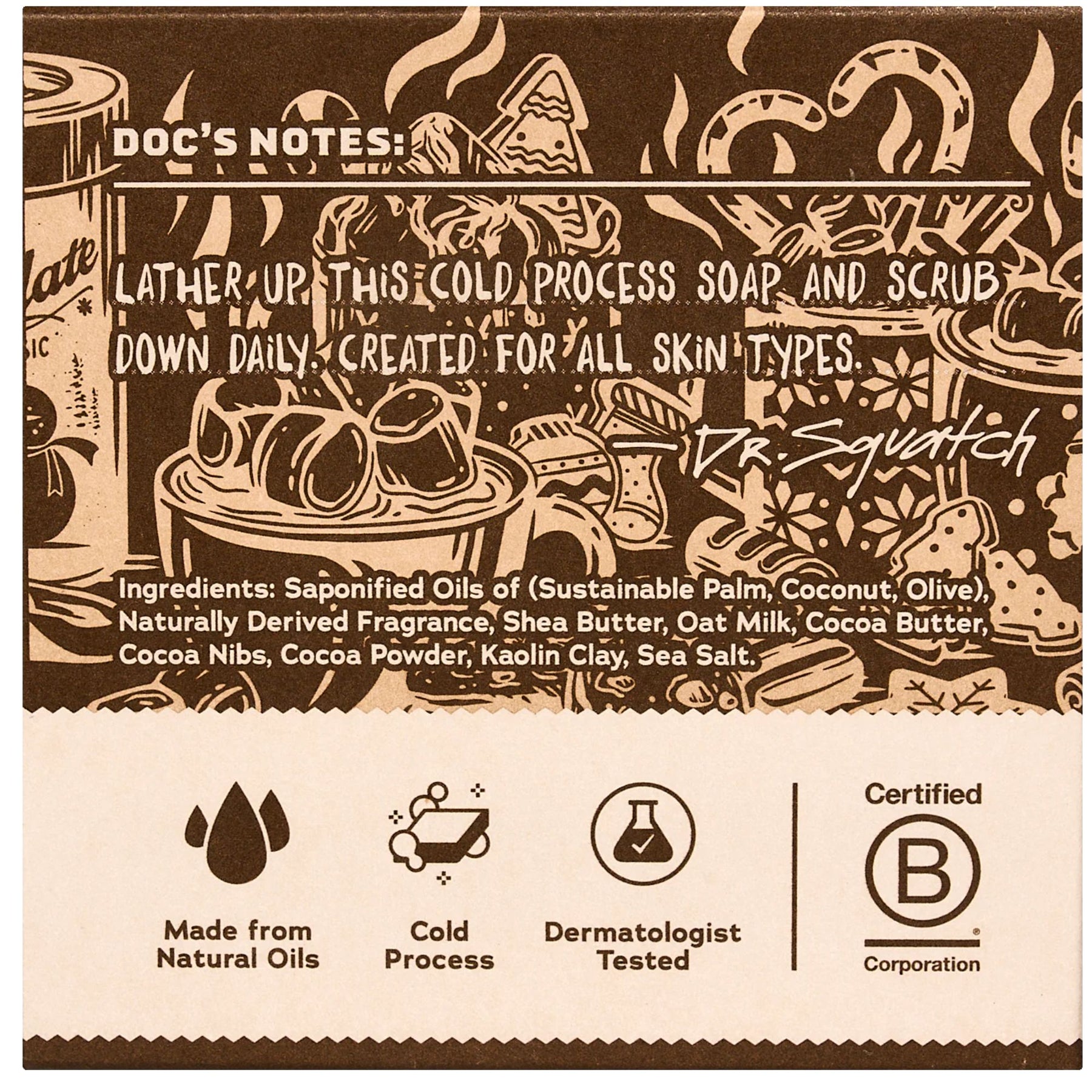 RAISE THE BAR on your shower with our sudstastic cold process natural soap featuring a blend of antioxidant-rich Cocoa Powder, moisturizing Cocoa Butter, and nourishing Oat Milk