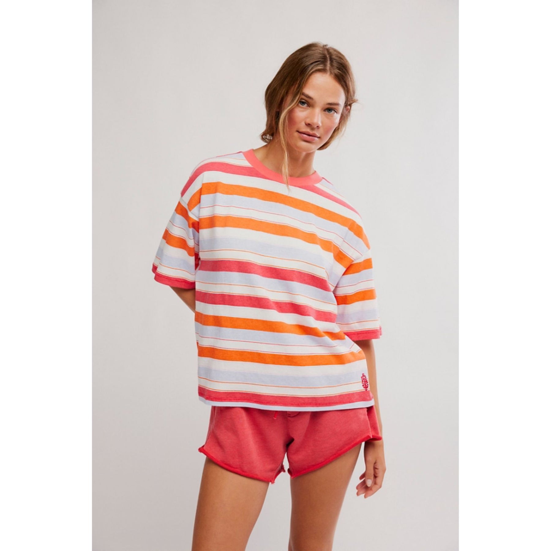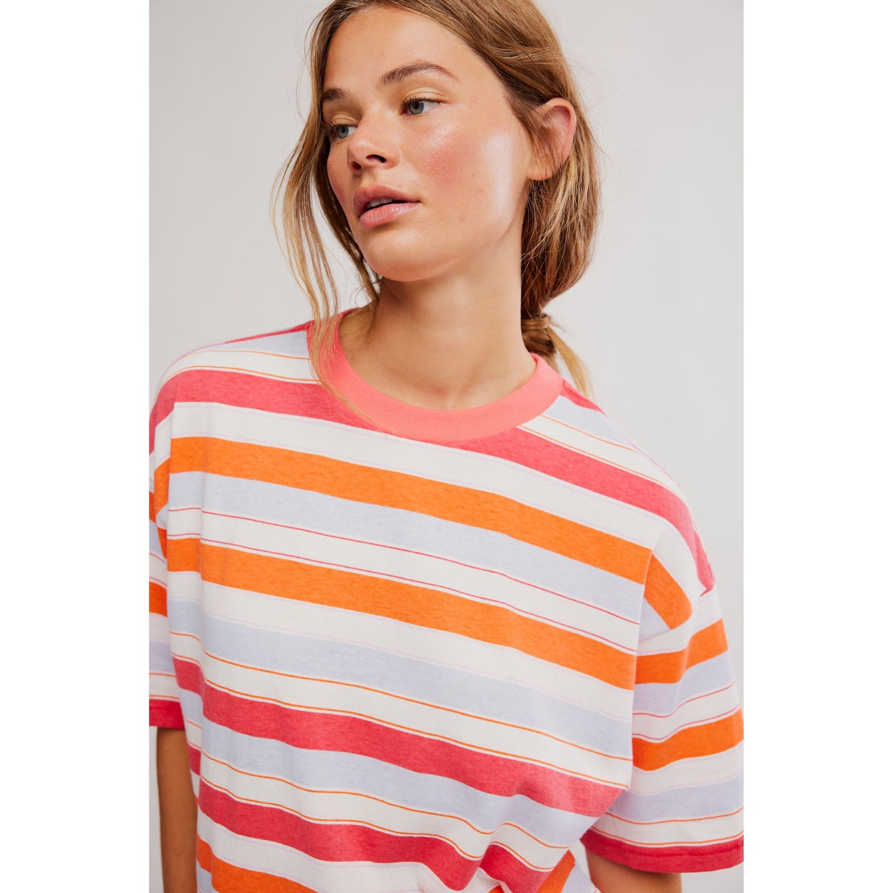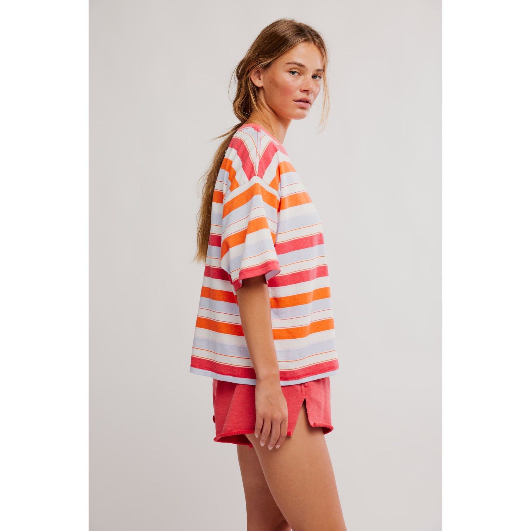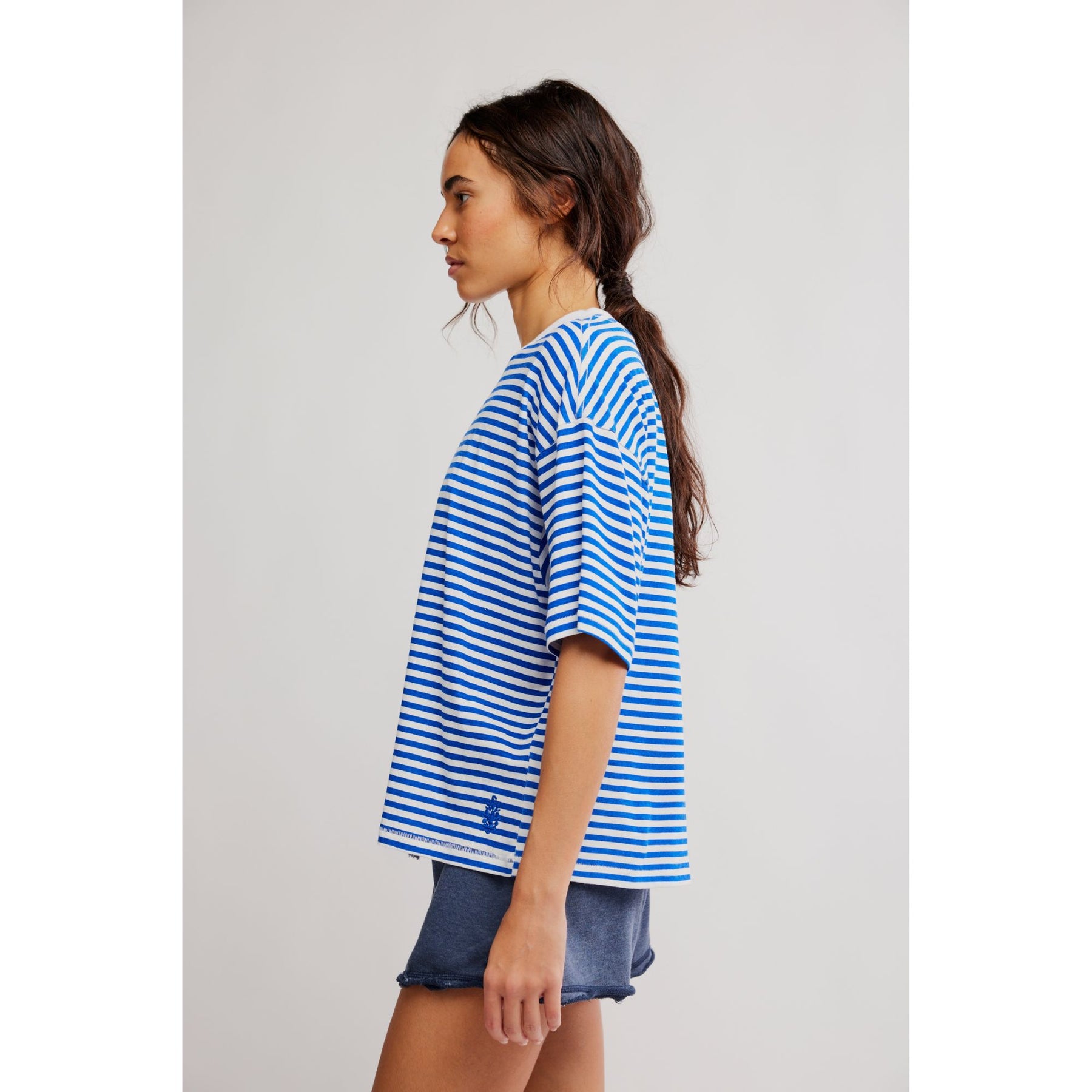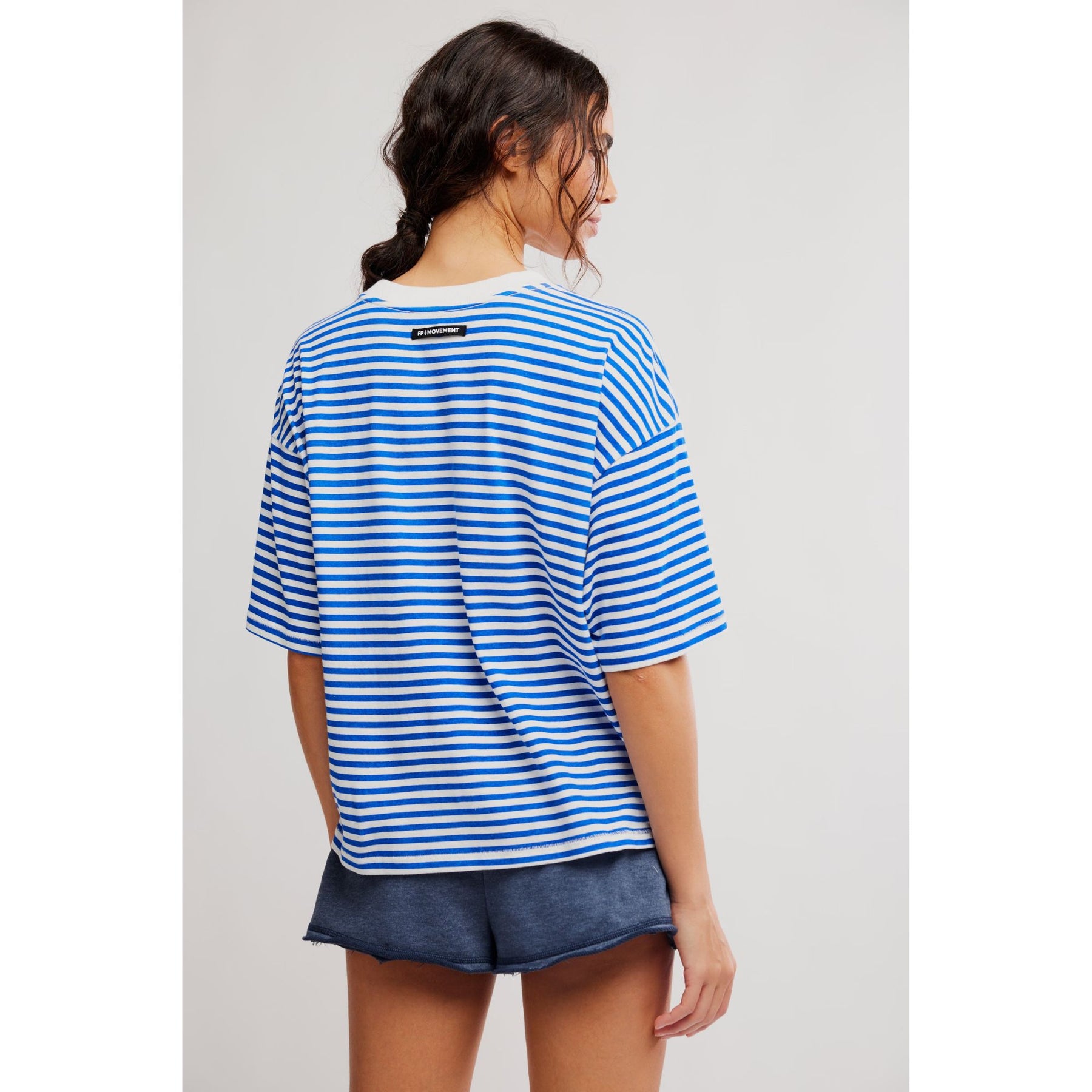 Free People's essential and eye-catching tee, featured in a timeless short sleeve style and slouchy, slightly boxy silhouette. Topped with a classic stripe pattern and contrast crew neck.