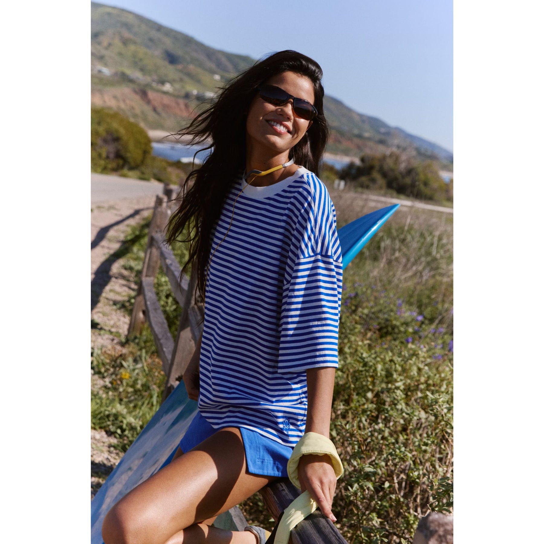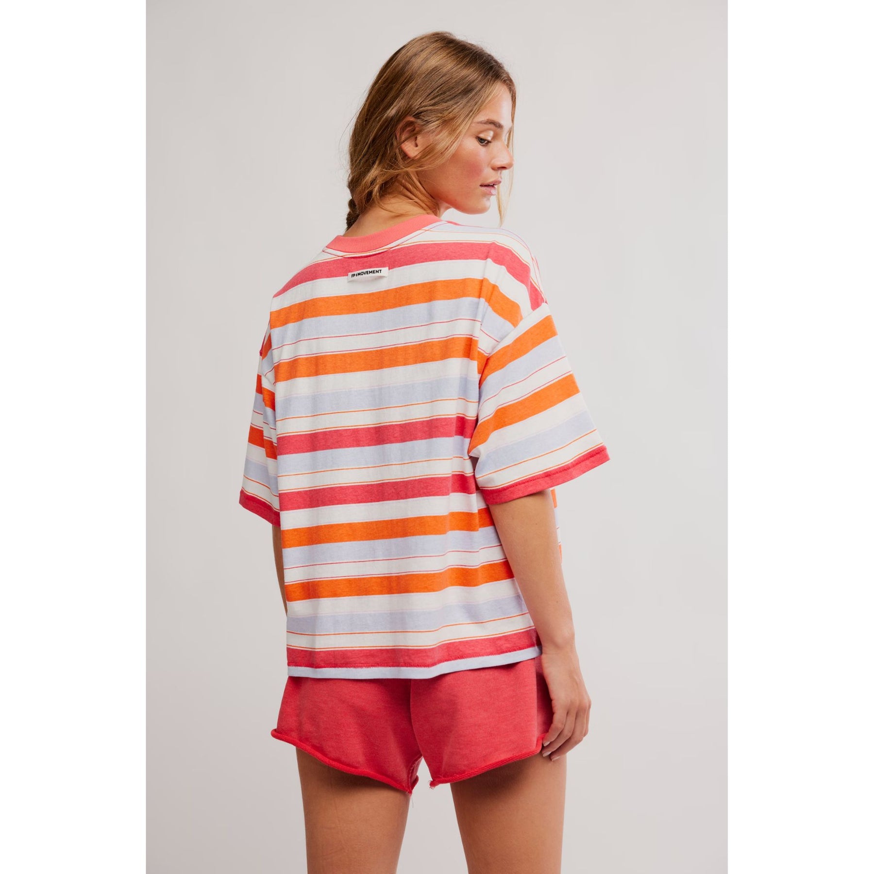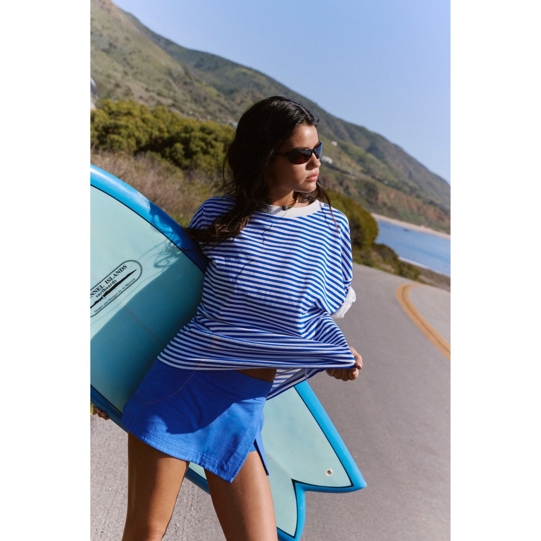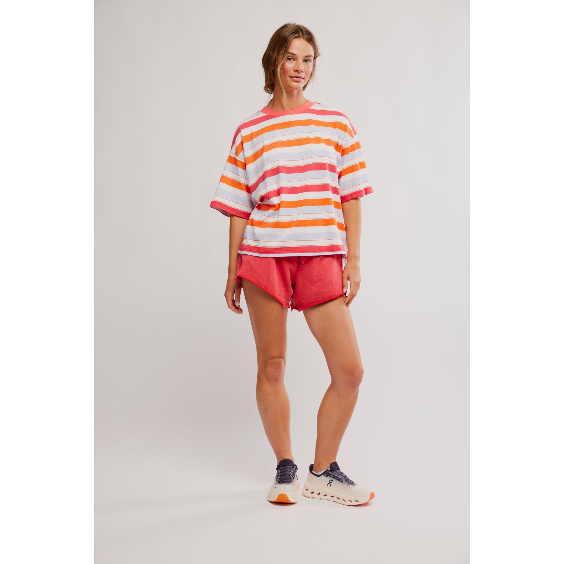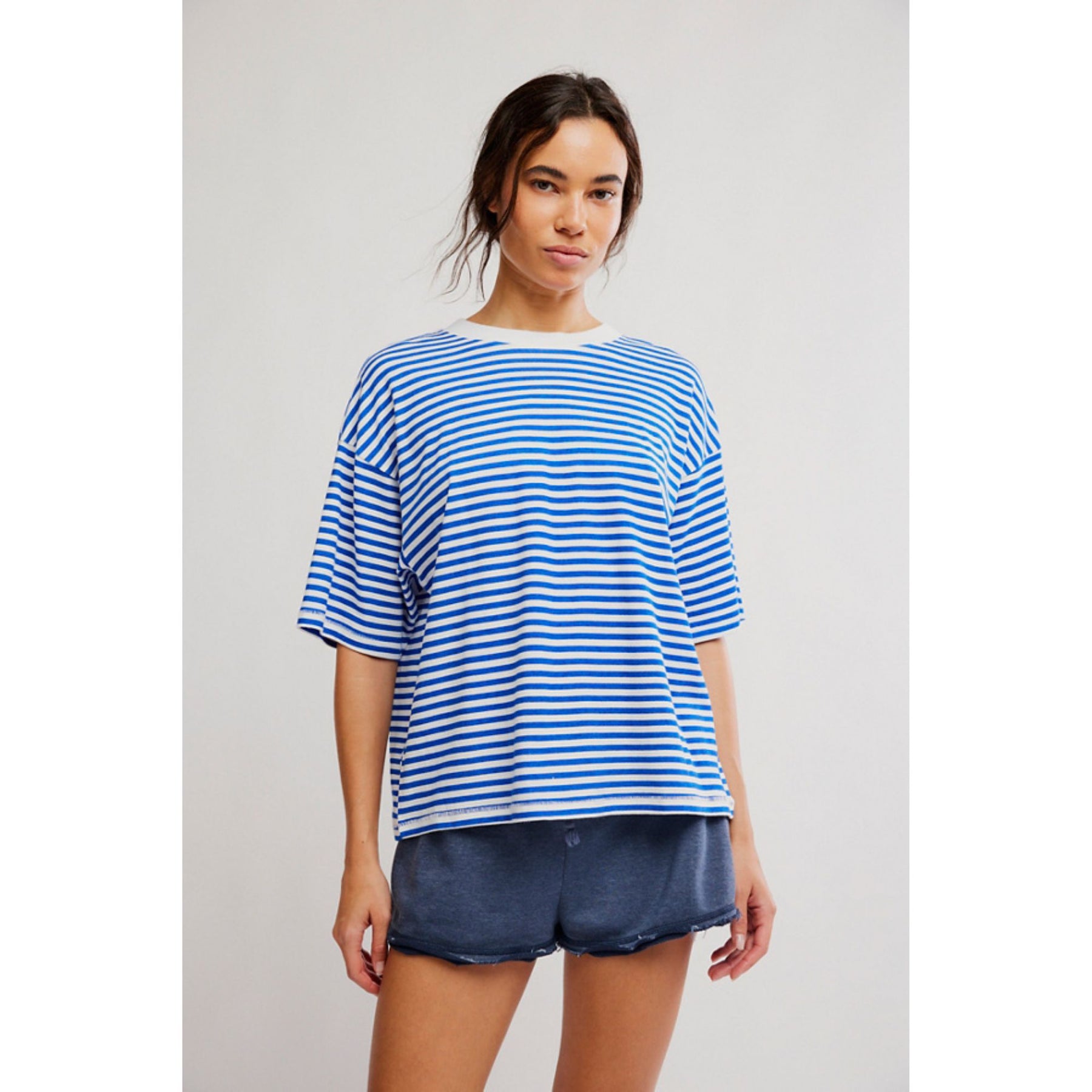Free People's essential and eye-catching tee, featured in a timeless short sleeve style and slouchy, slightly boxy silhouette. Topped with a classic stripe pattern and contrast crew neck.