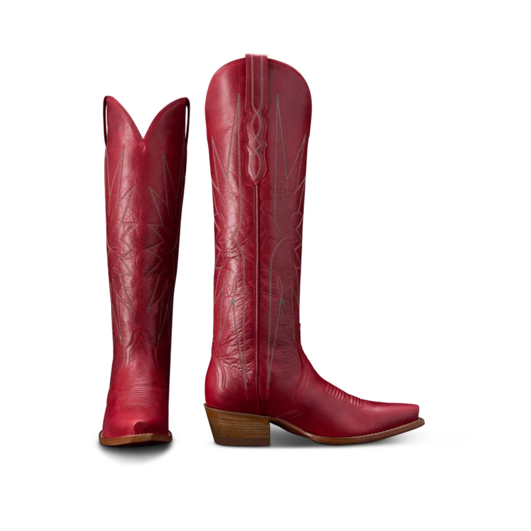 A tall showstopper, The Loretta features an intricately stitched 17” shaft with hung leather lining and a streamlined modern profile that’s made to be shown off. A 1 ¾” stacked leather heel and snip toe ensure comfort doesn’t take a backseat to looks, and our signature toe bug takes it all the way West.
